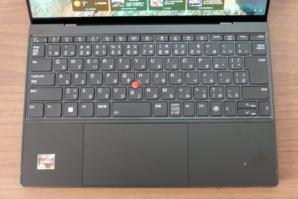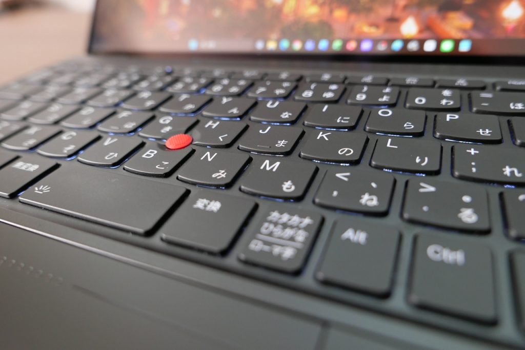 この通り特定のキーが小さい、配置がおかしいといった要素が一切ないフルサイズの綺麗なキーボードになっています。ThinkPadシリーズはFnキーとCtrlキーが一般的な配置と逆になっていることが多いのですが、こちらに関しては一般的なままなのも素晴らしい。