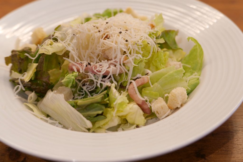 パルメジャーノチーズがたっぷりかかった、おいしいサラダなんですよ。