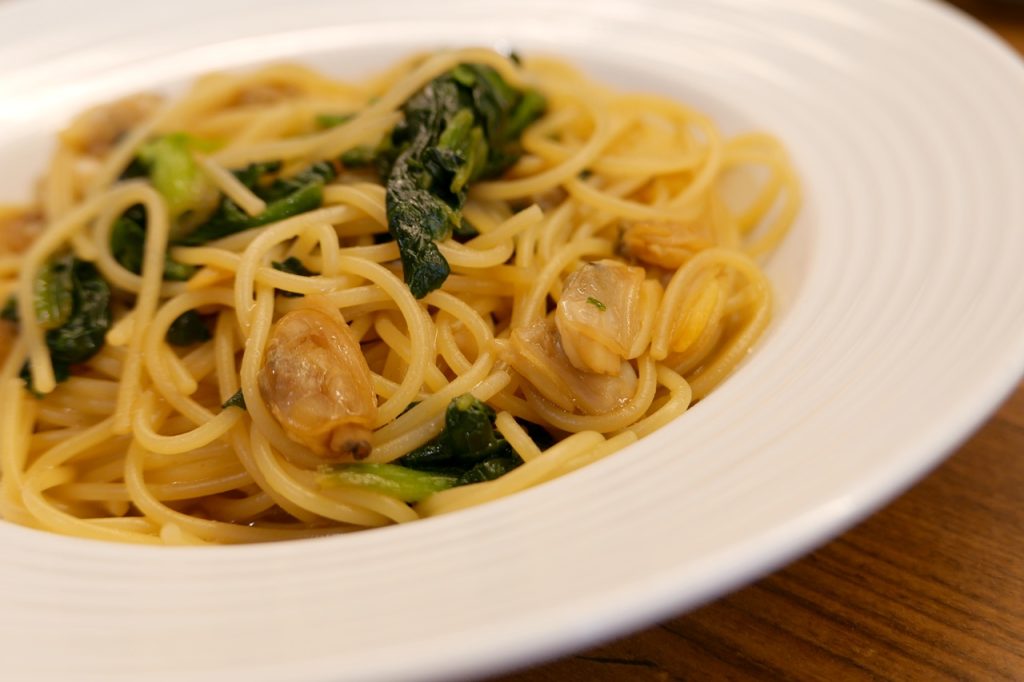 続いて「あさりとほうれん草のバター醤油」。なんとこちらも390円です。