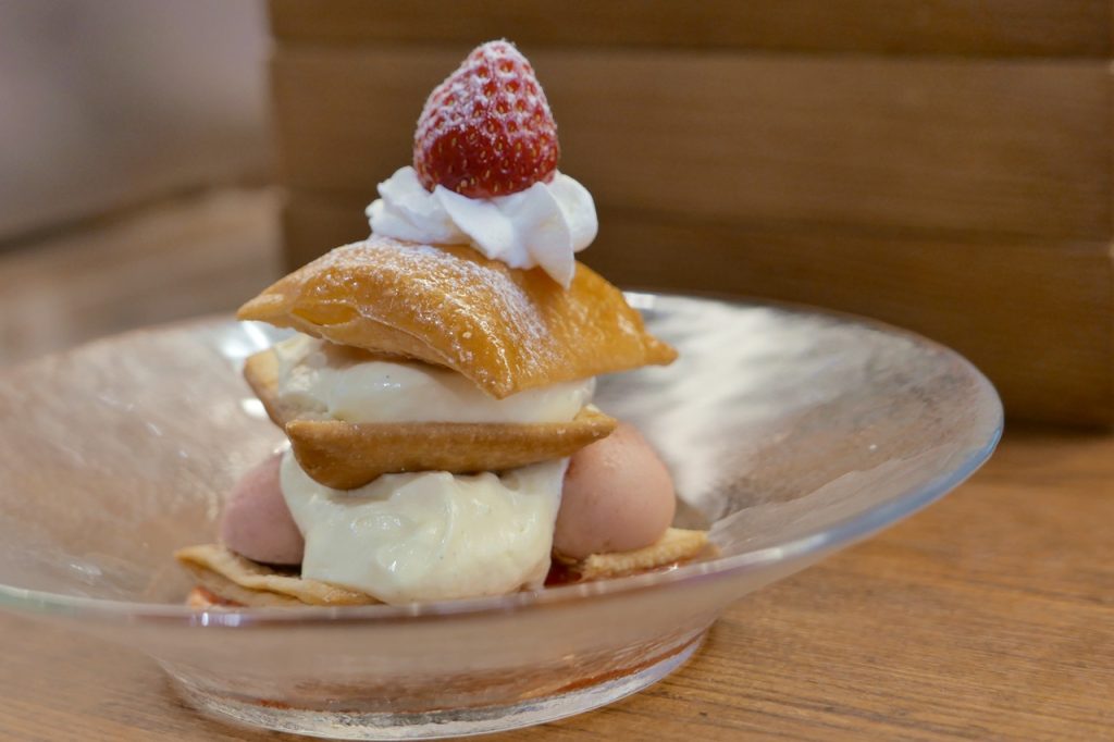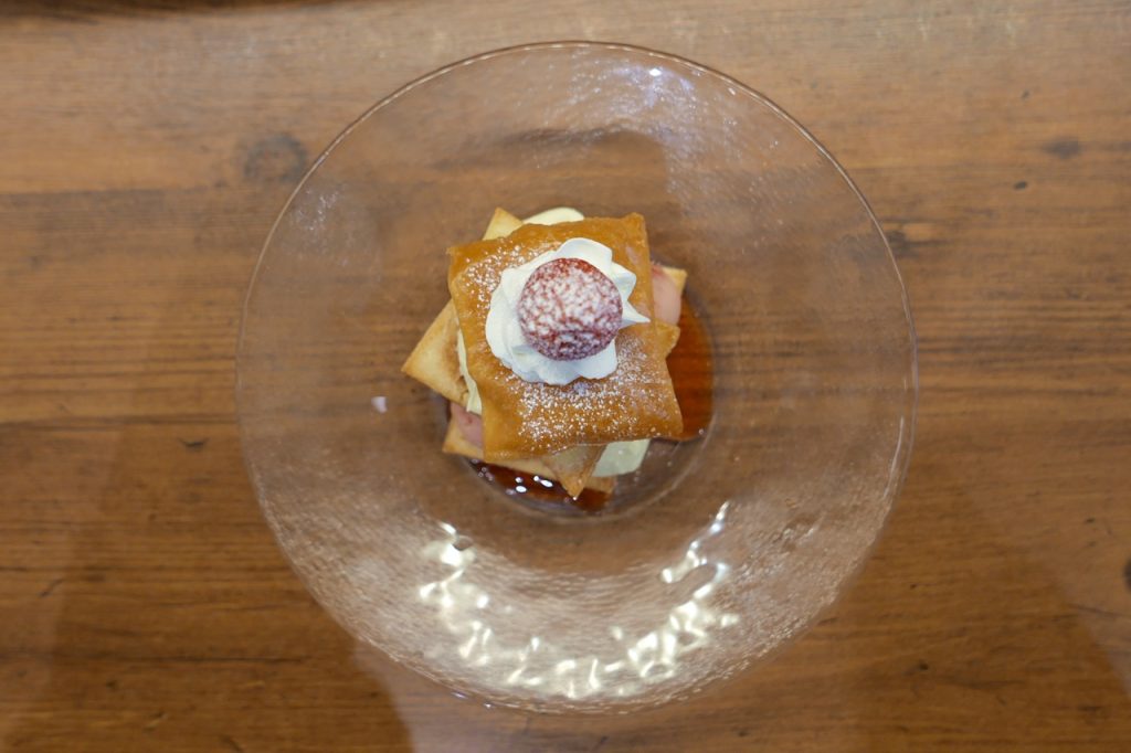 こちらは苺のミルフィーユ。同じように上から撮ってみたのですが、いまいち伝わらない写真に。