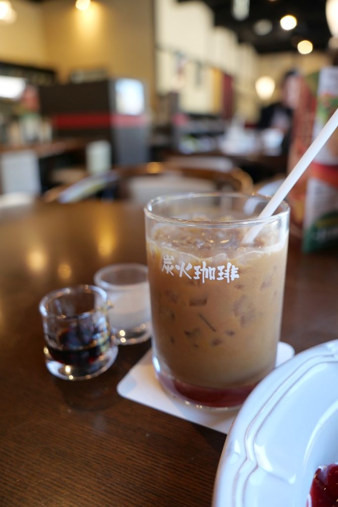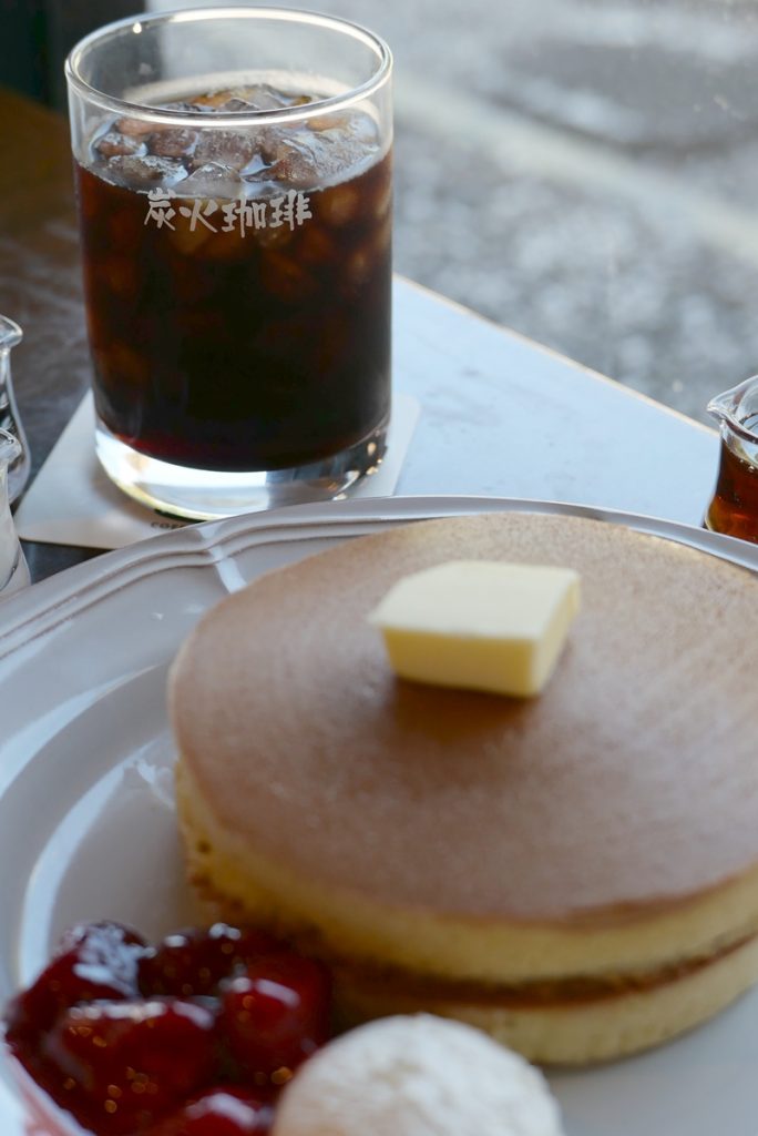 こちらの場合は主役はコーヒーで、手前のパンケーキのほうが遥かに大きいのに主役にはしていません。