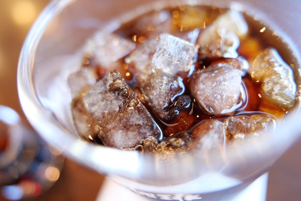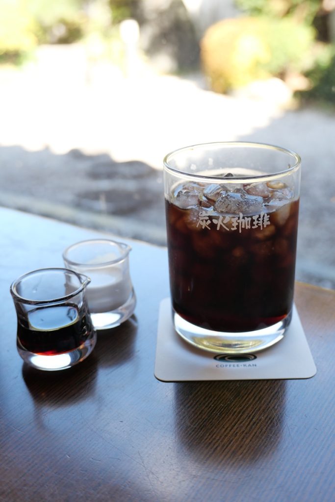 コーヒーグラスの「珈琲」にピントを合わせることで、背景だけでなく小さいグラスもぼけて表現に深みが出たような気がします。