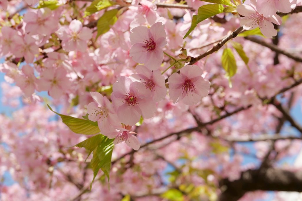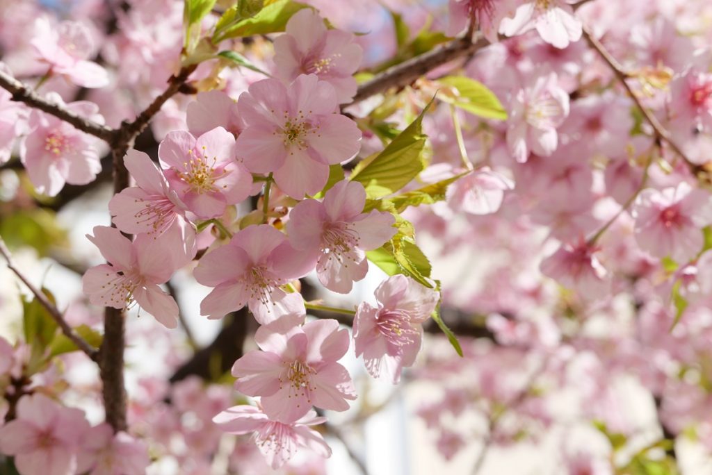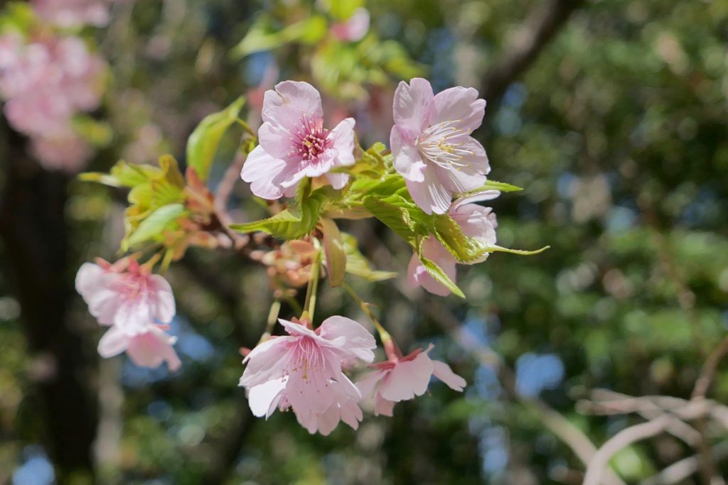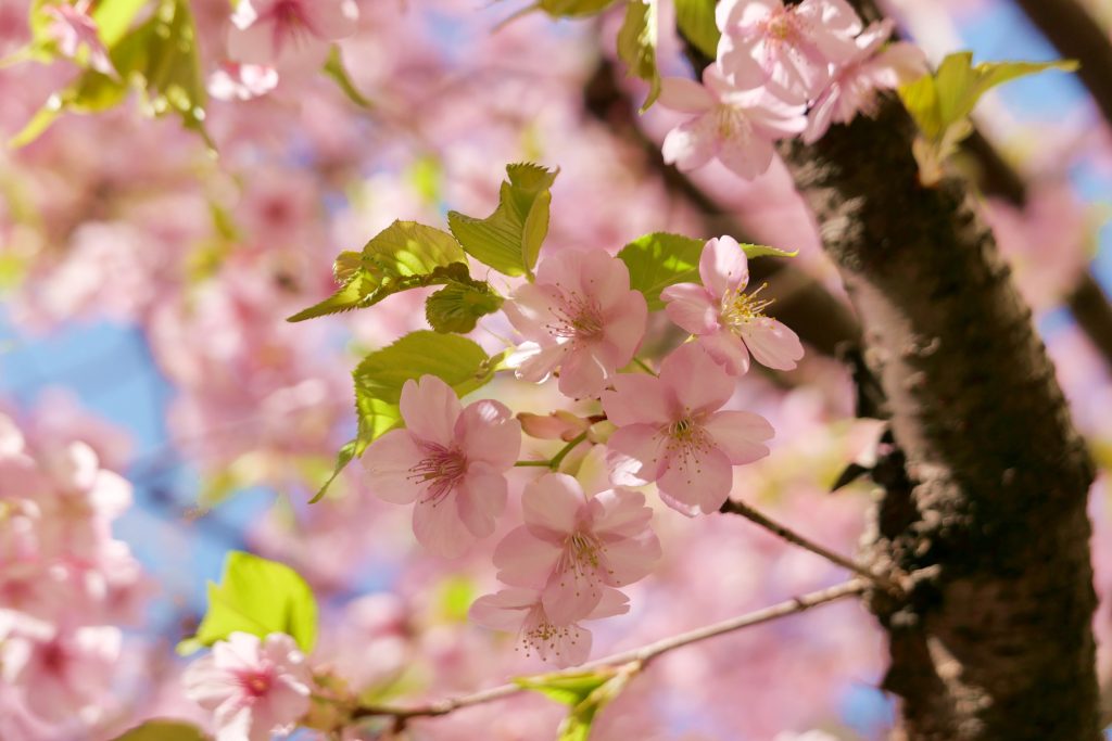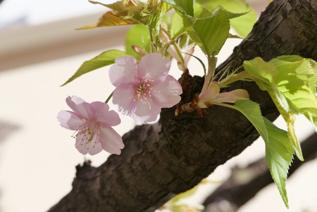 と言っても今回はパーク内ではなく、「ディズニーアンバサダーホテル」です。敷地内に河津桜が咲いているところがあります。