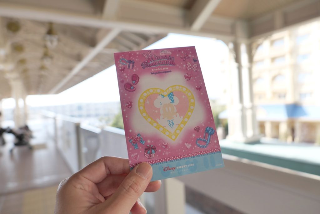 ちょうどディズニーリゾートラインで、開催中のイベント「ミニーのファンダーランド」にちなんだスタンプラリーをやっていたので参加しました。