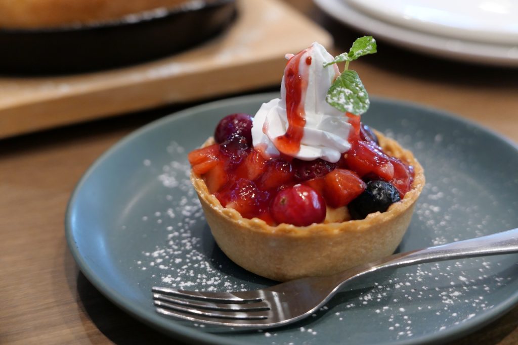 小さめのタルトは被写体にグッと寄って。広角端で寄るとマクロ的な大きなぼけと歪みが発生しますが、望遠端だと適度にぼけはありつつも誇張しない自然な感じでいいですね。