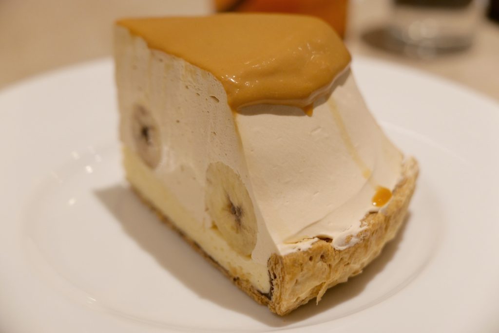 「生キャラメルのバナナ塩カスタードクリームパイ」垂れた生キャラメルがとてもおいしそうです。