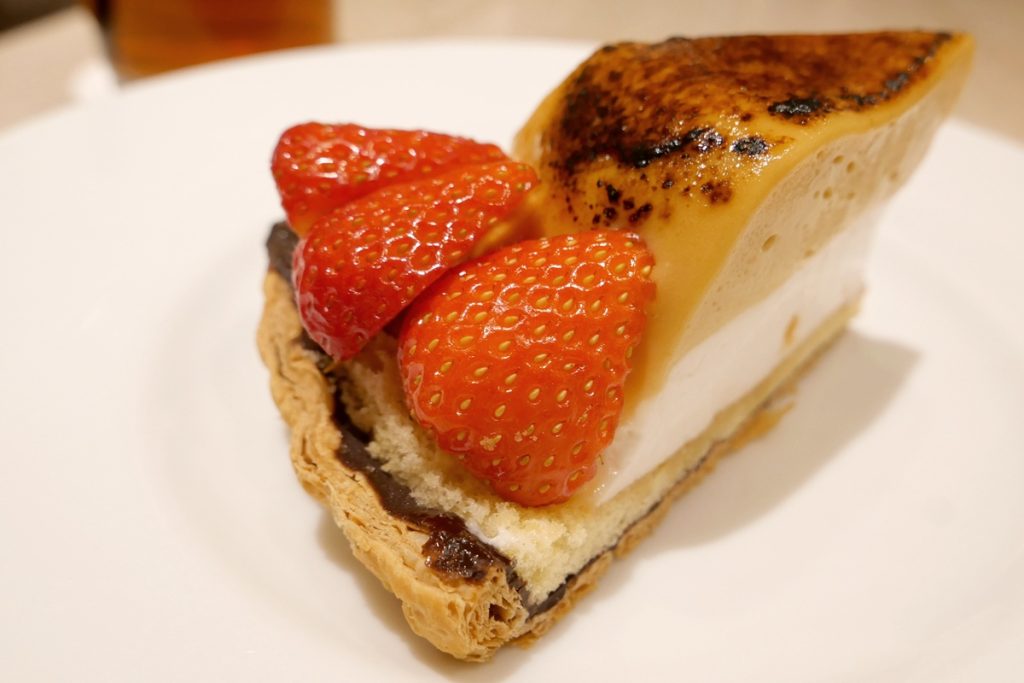 「いちごのキャラメルクレームブリュレパイ」甘さは見た目よりは控えめで、