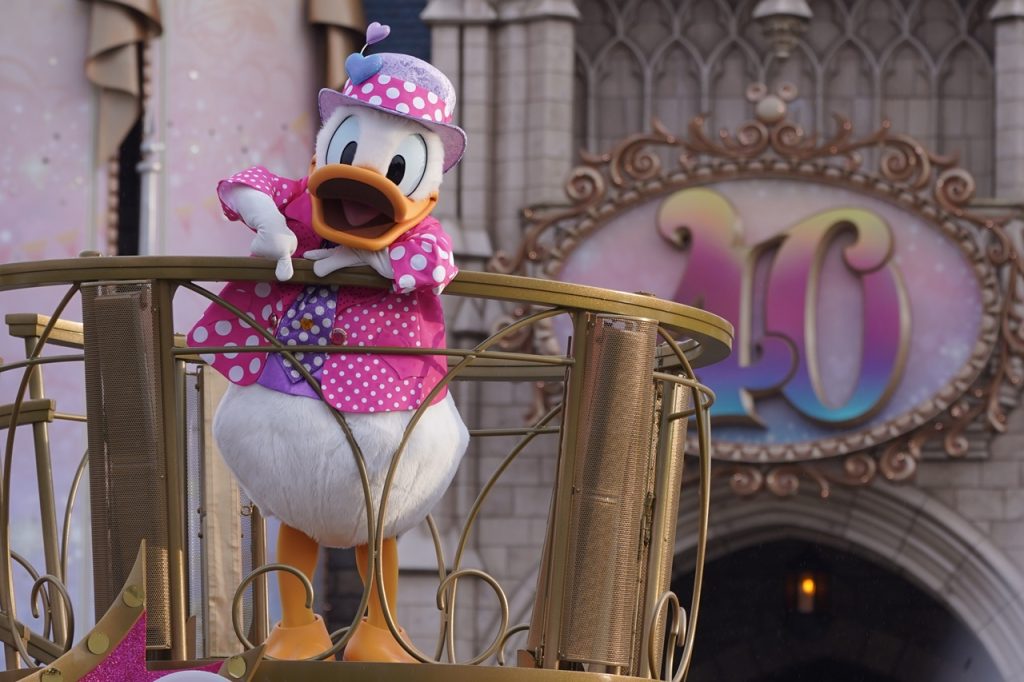 東京ディズニーランドの場合、パレードルートで司会にフロートが見え始めたような段階から抜けるので、必然的に撮影チャンスの機会が増えます。