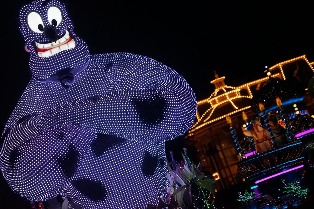 望遠端の240mmは、ディズニーランドにおいては必要十分な焦点距離があります。200mmだとショーベースで席が後方の場合は足らないと思う場合が多いですが、240mmあればキャラクターのアップも撮影できますね。