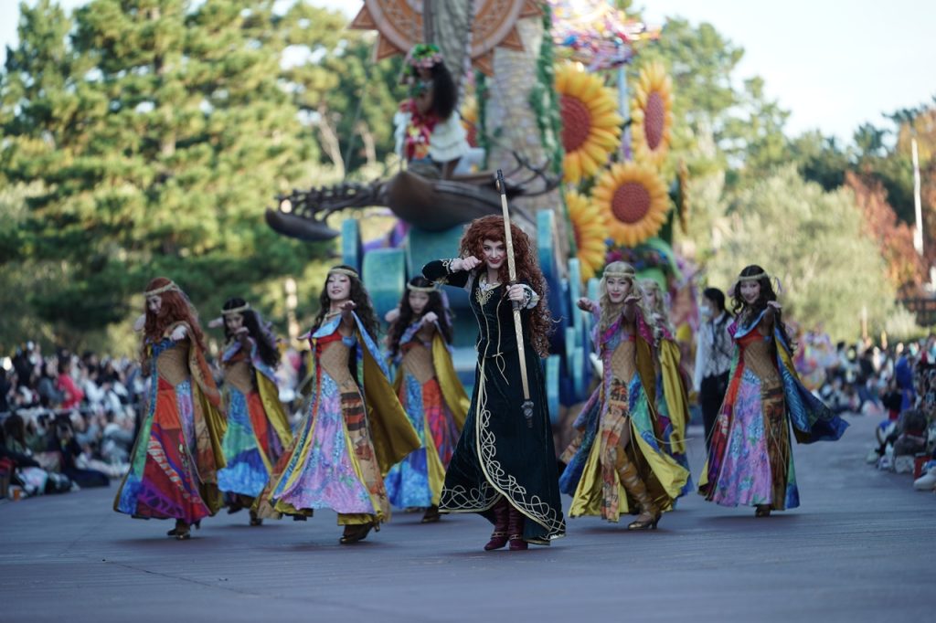 位置取りによってはまっすぐ歩いてくるキャラクター達を正面から捉えることができます。中心のメリダにピントを合わせると、パンフォーカスになりがちなこんなシーンでも立体感がすごいですね。さすが180mm F2.8です。